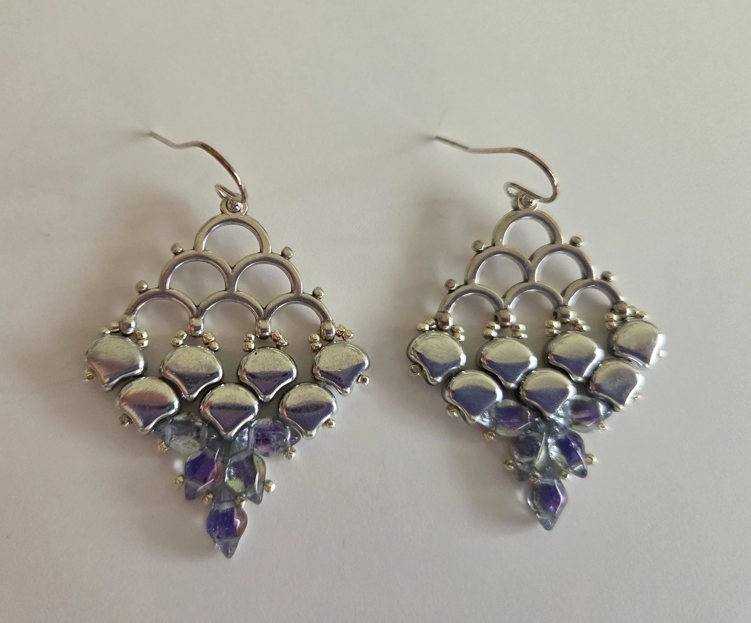 Rain forest jasper, Swarovski pearls and terra cotta Czech druk beads create these drop earrings. Earwires are 14k gold filled. Earrings measure 1-1/2” high and 3/8” wide.